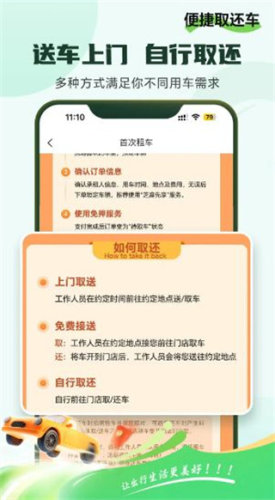 2.随时都可以在平台自由租赁汽车,你可以获得更便捷的租车体验。