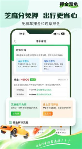 芝麻信用550分以上有机会享租车押金+违章押金双免服务,为您减少租车压力。