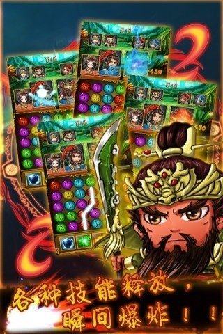 玩法将经典三消与三国题材结合,不屈战神刘关张,这里有Q萌的三国武将,不屈战神刘关张在这里都可以被招募到你的麾下武将收集元素和消除玩法相结合,独特的消除与三国结合,在不同的场景中等待玩家的体验。