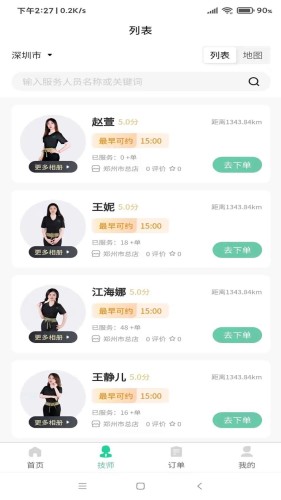 2、内置海量的专业服务技师信息,让你自行对各个技师进行选择下单。