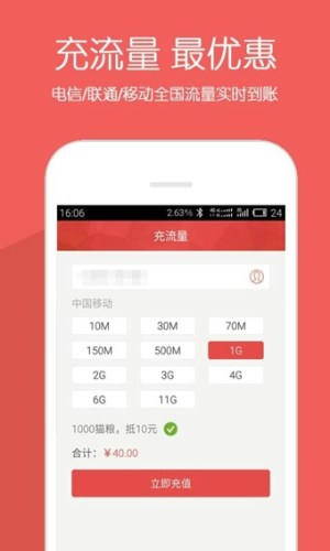 像支付宝、淘宝、京东、苏宁易购、当当充话费一样快捷充值手机流量;