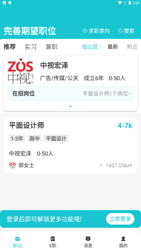 消息推送:通过设置关注企业或职位,随时接收最新的招聘信息和面试通知。