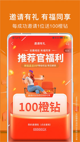 5.新会员用户福利,新会员绑定邀请可得200橙钻,还可以申请免费好物体验。