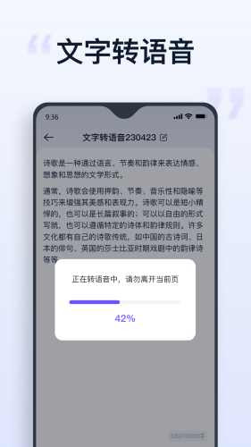1、可以将文字转换成声音,方便对于视觉障碍者和普通用户的阅读。