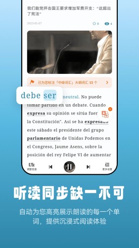 - 全新艾宾浩斯和人工智能练习模式,让你训练阅读听力的同时不知不觉增加西班牙语词汇量。
