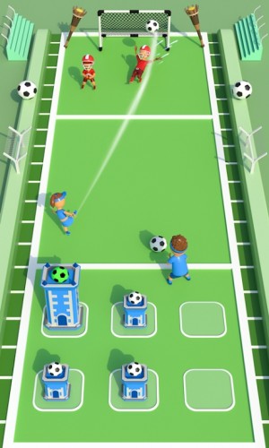 1.游戏以足球踢球为主题,通过将足球队合并进一起射入对方球门来进行关卡挑战,创意十足。