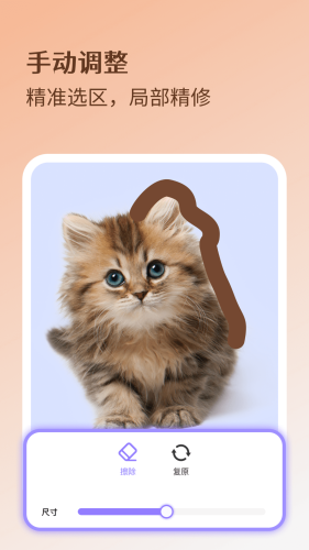 我们理解有时候您可能需要更多控制,为此,【魔法抠图】提供了手动抠图精修工具,让您根据个人需求进行微调,满足您的【细节控】需求。