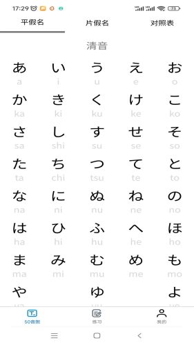 3、支持中英文和多种日语的界面语言和发音语音,帮助不同国家和地区的用户学习日语五十音。