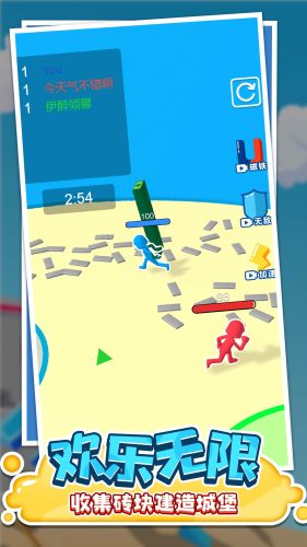 臭弟弟来单挑,爆笑休闲抢夺砖块小游戏。这里操控你的小蓝人加入砖块抢夺战斗,抢夺更多的砖块,帮助建造你的专属城堡,解锁更多的关卡来挑战吧。