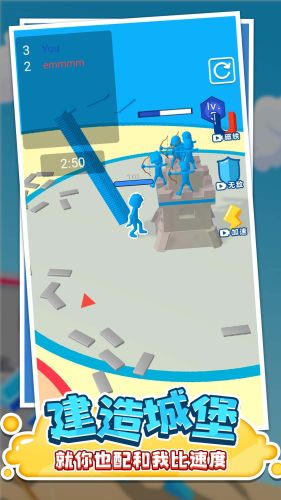 多样化的砖块系统:玩家可以通过收集各种不同的砖块来提高城堡的防御和攻击力,打造独一无二的城堡。