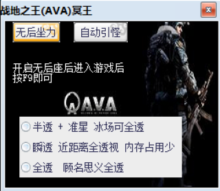 战地之王冥王辅助是一款专为腾讯枪战网游战地之王AVA制作的一款游戏辅助工具,这款战地之王冥王辅助支持人物透视、自动引怪、无后坐力等功能,透视模式包括全透、瞬透、半透,辅助绿色小巧,占用资源少,并且安全稳定,喜欢玩战地之王的朋友可以试试这款冥王辅助!