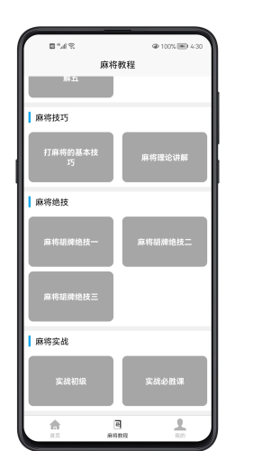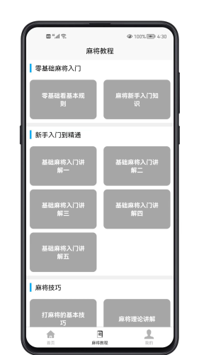 麻将学习宝典app是一款可以让人体验到的崭新的麻将教学资源,它能让小白更快的学会麻将的基本知识和技巧,内建了大量的新手教程,所有人都能欣赏到大量的优质的视频教程,还能看到大量的高阶的麻将战斗技巧,还有大量的实战资料。