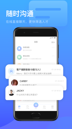 智联招聘app下载安装115.6M1161人在玩智联招聘手机客户端下载是智联平台推出的手机招聘平台,应聘者可以通过智联手机客户端投简历,每天都会有很多职位发布,招聘者可以发布相应的职位,随时查阅,非常方便!