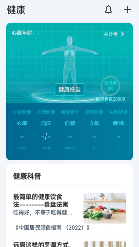 「卫和健康」为用户提供基于心率、血压血糖、血氧、睡眠、运动等层面的数据分析及解读,心脏安全数据分析、各类指标异常情况警示,让用户实时了解自己得健康状态。