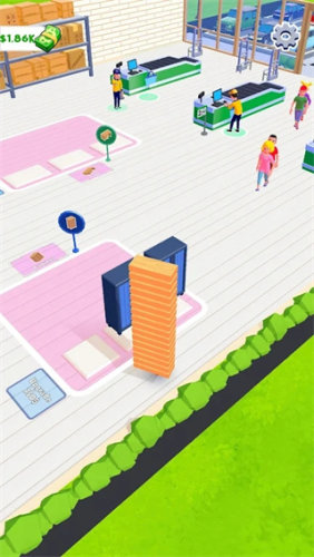 3、控制人物来到最左边的木材生产机器进行木材的搬运,控制人物靠近木材运输带,将会自动拾取,拾取到一定数量会出现fall字样,意思是拾取数量已满;