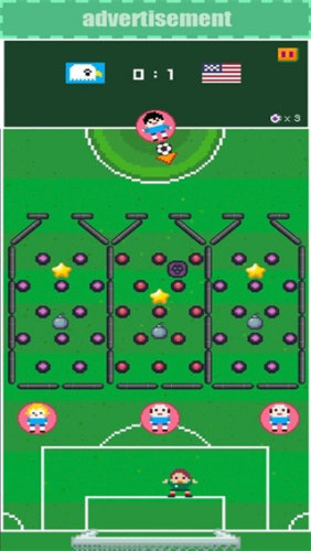 玩家需要在限定的球数内赢得当场的比赛,只有赢得比赛才能开启下一关卡,而每个国家关卡将会有重重的障碍来阻止你的进球。