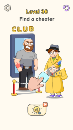 DOP5游戏,DOP 5: Delete One Part,这款游戏的玩法很简单,根据每一关游戏的提示,点击屏幕,擦除一款区域,就可以正确通关了,越到后面,关卡越难,遇到不会的关卡还可以点击观看广告来通关。休闲益智的小游戏,消磨时间可以玩。