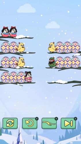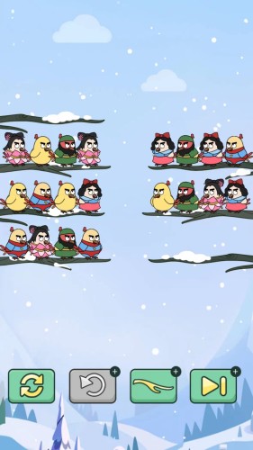 1、每个关卡的小鸟数量和树枝形状都不相同,你需要在有限的步数内将它们合理分配。