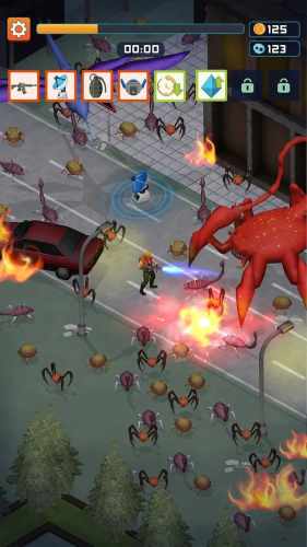 趣味割草游戏,外星人入侵周围全是奇奇怪怪的生物,从未见过,但有一点可以肯定它们不怀好意,拿起武器,灵活移动,捡拾能量块提升等级,选择合适的技能,将怪物都干掉,你还会遇到大boss,怎么办?只有上了!