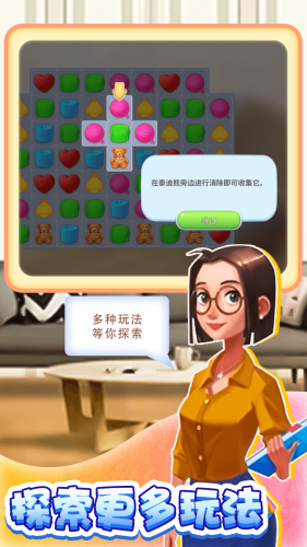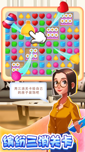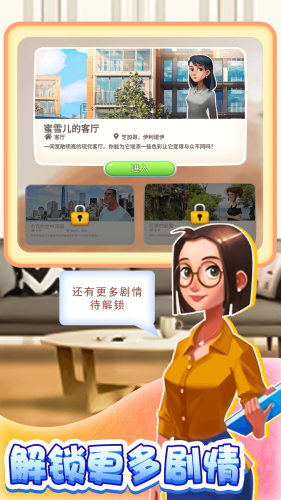 梦幻小屋,合成三消的装修小游戏,开局解锁一个梦幻房屋,通过消除闯关开启不同的我是,厨房等房间,选择喜欢的装修风格,装饰你的房子吧。