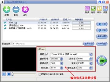 转换输出视频格式 Apple iPhone MPEG-4、iPhone H.264/AVC MP4 格式