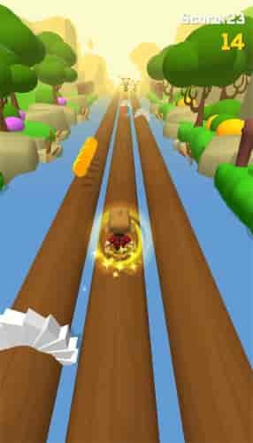 1、游戏难度中等,比常见的跑酷多了一个砍伐树木项目,增添了游戏的紧张性。