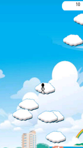 有一个火柴人和许多向上飘的云。你要点击屏幕,让火柴人可以在空中行走,享受美妙的冒险。这款单机游戏不需要联网,充满了乐趣、挑战和惊喜。操作简单,但是注意不要摔倒,否则游戏会失败。