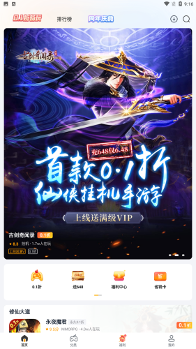 3.海量游戏,公益游戏、单机游戏、折扣游戏、海量资源、卡牌策略、回合3D、武侠魔幻。