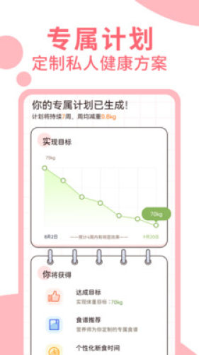 1、提供了个性化的饮食方案,根据我们的身体状况和目标定制,轻松控制卡路里摄入。