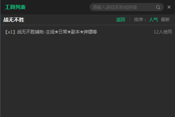 新浪战无不胜辅助目前仅提供了1个游戏脚本,主要支持一键主线、每日签到、自主副本、自动喊话等功能,是战无不胜玩家升级练号必备工具。