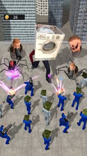 1、与其他马桶人一起突破包围圈,走出城市,并在各种场地寻找强化道具;