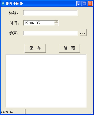 本定时定点报时软件支持定时若干个,并且可以自定义铃声。方便定点提醒自己做某事。部分网友在使用中提出可否设计成某天报时等,等我有时间可以修改下这个软件。请注意查看最新消息!