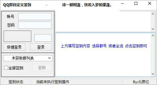 QQ群自定义签到工具可以帮助你在QQ群中自动完成签到,喜欢玩QQ的朋友都知道,在qq群里每天都可以有一次机会签到,加的群太多了不想一个一个签到怎么办呢?今天小编就给大家带来这款QQ群自定义签到,支持超大量自定义信息,喜欢玩qq群的朋友可以免费下载来使用。