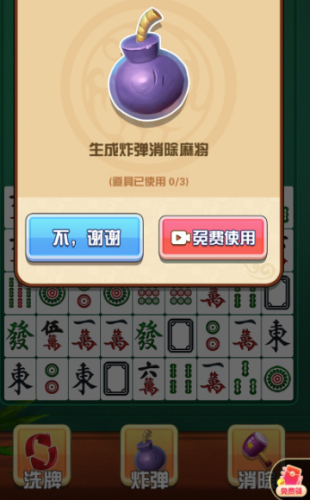“炸弹”可以清除周围一定范围内的麻将,帮助你破除难题。