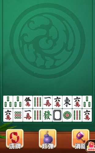 游戏中还有三个功能键:“洗牌”可以重新排列上方的麻将,为你创造新的消除机会。