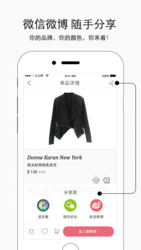 在您遇到搭配烦恼的时候,只用根据所需设定场合、色系等简单条件,轻摇手机就可获得根据专业时尚编辑的推荐理由所产生的搭配组合,并会根据季节温度的变化自动调整相应的方案!再配合精心设计的的模板,几秒钟即可生成精致如杂志般的内容分享给小伙伴们。