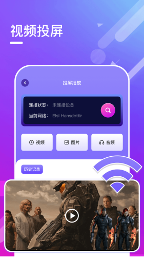 2.视频投屏播放,选择同一局域网下的电视或者屏幕等任何支持投屏的设备,一键投屏,轻松投屏没压力!