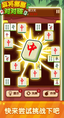 3、重排道具可以重新排列麻将的位置,炸弹道具则可以帮助您消除一组麻将。