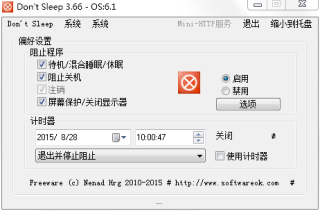 Don't Sleep字面意思是不睡觉,这当然指的的是计算机防止关机、待机、休眠、注销等等,除了阻止关机外,Don't Sleep还能定时定点执行某项关机内容。