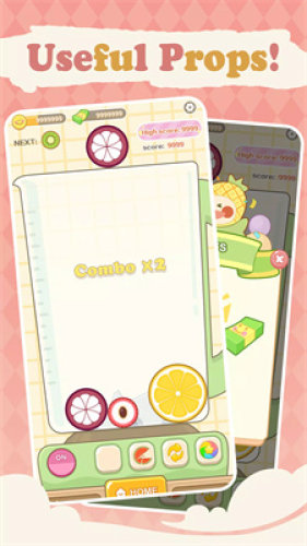 2、*丰富道具系统:设有丰富的道具系统,玩家可以使用道具帮助自己消除水果,增加得分。
