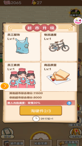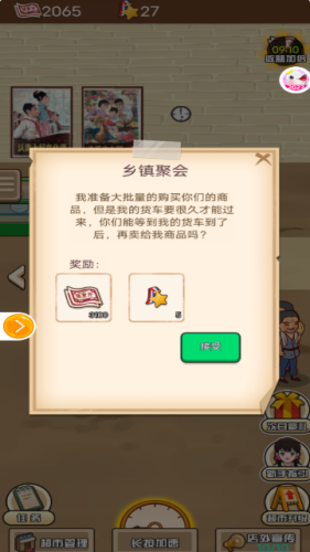 3、通过赚取金币,玩家可以升级店铺,扩大经营范围。