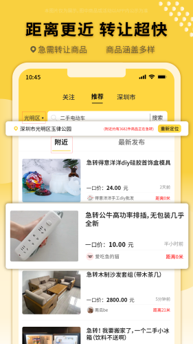 4.方便快捷,转让更快。都是附近社区用户发布的转让商品,特别是比较急的用户,可以马上看货,立即转出。
