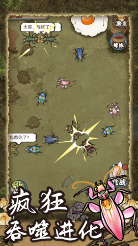 极限狩猎是款好玩的休闲益智手游,不同的环境加入了超多的体验,选择你最喜爱的昆虫来进行挑战吧,益智的游戏内容十分的过瘾,魔性的玩法期待着你的加入,快来一起挑战强大的boss吧!