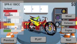 2、多种摩托车可选择,从经典的跑车到激情四溢的街车,玩家可以根据自己的喜好选择不同款式的摩托车进行比赛。