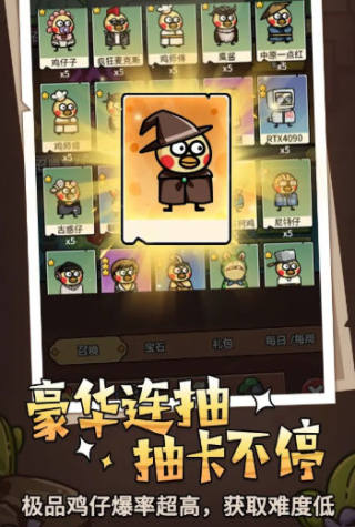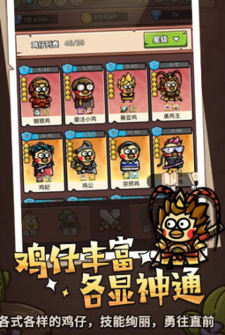 3、你将掌控一支多才多艺的鸡群,每只鸡仔都有独特的技能和特点。