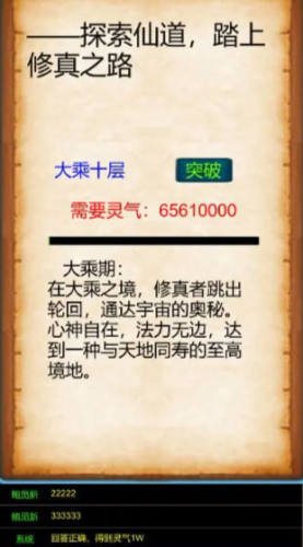 在《武界养老修真》中,玩家将穿越不同境界,从修炼气血到登临大乘,感受修真者的成长和晋升。