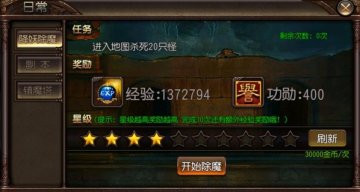 1、每天日常的降妖除魔任务,完成一次降妖除魔任务玩家可获得500功勋,每天只有十次。