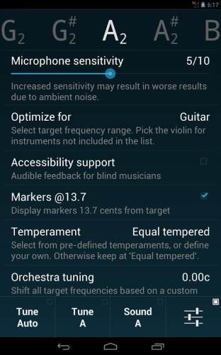 使用手机的麦克风调整任何乐器(小提琴,中提琴,大提琴,贝司,吉他,夏威夷四弦琴,钢琴,甚至管乐器仅举几例已经过测试)声音的音调。