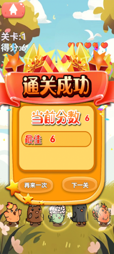 2、在游戏过程中,玩家必须避免点击到错误的对象,比如其他的动物或障碍物,否则就会失去游戏;