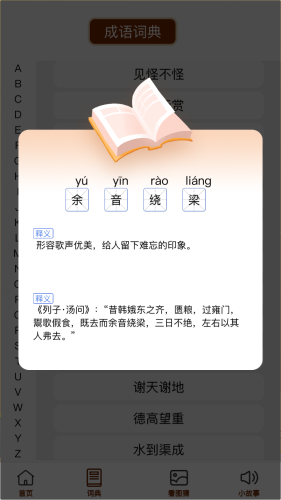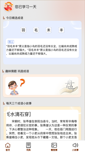 1)全面的成语字典和趣味游戏,满足用户在写作和考试中对成语的需求。